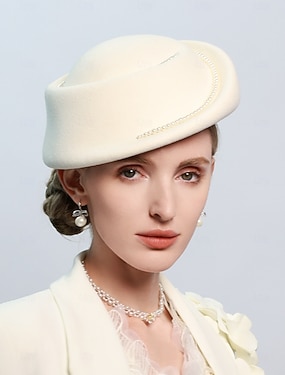 hoeden 100% wol baret hoed bruiloft theekransje elegante bruiloft met parel pure kleur hoofddeksel hoofddeksel