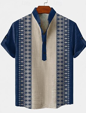 Voor heren Geometrisch patroon Etnisch Overhemd Button-down overhemd Korte mouw Vintage Retro Feestdagen Casual / Dagelijks Zomer Lente Opstaande boord Henley Kraag 3D-afdrukken Linnenachtig shirt