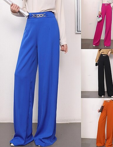 Dames Chinese Recht Elegant Modieus Streetwear Volledige lengte Hoge taille Effen Zak Elastische tailleband Comfortabel Comfort Zacht Micro-elastisch Buiten Kantoor Straat blauw Zwart Wit Geel Lente