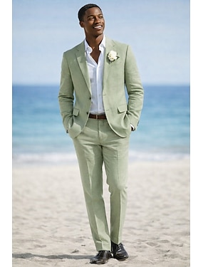Heren Smoking Kostuums Strand bruiloft Lente bruiloft Salie Lente zomer Pak Formeel Effen Standaard pasvorm 3-delige set Enkele rij knopen met twee knopen