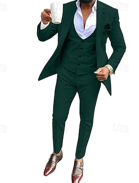 Heren Feestpakken Strand bruiloft Lente bruiloft erwt groen Lente zomer Pak Ingesneden revers Formeel Effen Strak 3-delige set Enkele rij knopen met twee knopen