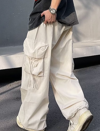 Voor heren Cargohosen Korte broek Trekkoord Zak Meerdere zakken Effen Kleur Winddicht Draagbaar Volledige lengte Buiten Vakantie Dagelijks Vakantie Streetwear Zwart Wit Inelastisch