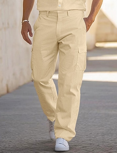 Voor heren Cargohosen Linnen broek Broek Zomerbroek Meerdere zakken Recht been Effen Comfort Ademend Volledige lengte Buiten Casual Dagelijks Modieus Streetwear Zwart Wit