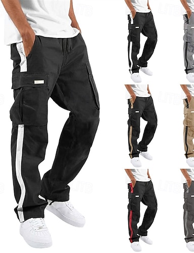 Voor heren Cargohosen Broek Vrijetijdsbroek Trekkoord Meerdere zakken Reflecterende strip Effen Comfort Zacht Volledige lengte Buiten Dagelijks Uitgaan Modieus Streetwear Zwart Wit Micro-elastisch