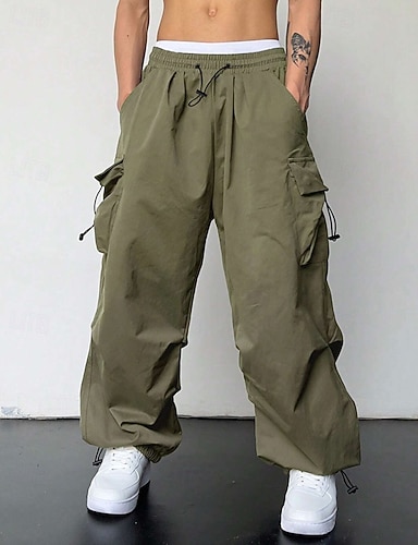 Voor heren Cargohosen Broek Trekkoord Elastische taille Meerdere zakken Effen Draagbaar Buiten Dagelijks Kamperen&Wandelen Modieus Klassiek Zwart Leger Groen