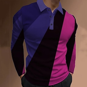 Voor heren Abstract Meetkundig Polo Lange mouw Poloshirt Revers Casual Buiten Straat Sportkleding Alledaagse kleding 3D-afdrukken Knop Lente Herfst Winter Rood Paars Groen