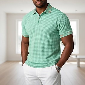 Voor heren Wafel Poloshirts Casual Feestdagen Opstaande boord Korte mouw Basic Modern Ruitjes Kleurenblok Kleurenblok Knop Zomer Lente Comfortabel Passend blauw Zwart Marineblauw Paars Groen Grijs
