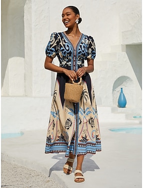 Elegant en luxueus Klassiek Strand Kleding Sportief Stijlvol Retro Actief Basic Sexy Vakantie Vintage Feest Casual Comfortabel Formeel Ontwerper Eenvoudig Strandstijl Tropisch Vakantie Bohémien Romantisch Casual / sportief Bohemen Etnisch Zoet Modieus Modern Casual / Dagelijks leuke Style Boho Streetwear Elegant minimalisme Dames Hawaii Dagelijks Zomer Volwassen Print A-lijnmore