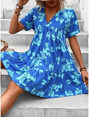 Dames Mini-jurk T shirt jurk Zonnejurk A lijn jurk Vakantie Casual Boho Strand Uitgaan Normale pasvorm Bloemig Grafisch Korte mouw V-hals blauw Blozend Roze Groen Zomer Lente