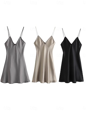 Dames Mini-jurk Zwarte jurk Elegante jurk Elegant Vintage Modieus Dagelijks Strand Vakantie Slank Effen Mouwloos V-hals Zwart Khaki Grijs Zomer Lente