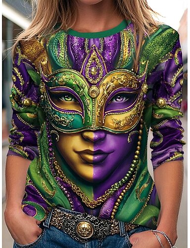Carnaval Dames T-shirt Crew Neck Lange Mouwen Tuniek Grafisch Casual Reguliere Tops Dagelijkse Print Groen Lente Fall