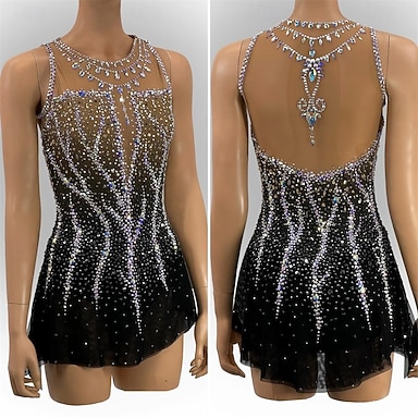 Kunstschaatsjurk Dames Schaatsen Jurken Zwart Lapwerk Asymetrische zoom Rekbaar Opleiding Wedstrijd Kunstschaatskleding Klassiek Kristal / Bergkristal Mouwloos Schaatsen Kunstschaatsen