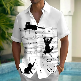 Voor heren Bestuursmeesters dier Kat Overhemd Zomer overhemd Overhemd met knopen Korte mouw Mode-casual Buiten Vakantie Dagelijks gebruik Zomer Lente Strijkijzer 3D-afdrukken shirts met kraag Voorste