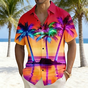 Voor heren Kleurrijk Kokosnootboom Tropische planten Hawaiiaans overhemd Overhemd met knopen Aloha-shirt Korte mouw Hawaii Vakantie Feestdagen Strand Kleding Zomer Lente Strijkijzer 3D-afdrukken