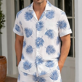 Voor heren Bloemenprint Palmblad Tropische planten Overhemd Cubaans overhemd Hawaiiaans overhemd Korte mouw Hawaii Vakantie Feestdagen Strand Kleding Zomer Lente Overhemd met kampkraag 3D-afdrukken