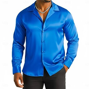 Voor heren Overhemd Satijnen overhemd Normaal shirt Overhemd met knopen Galashirt Effen Formeel Bruiloft blauw Zwart Wijn Groen Lange mouw Kamp kraag Alle seizoenen Kleding