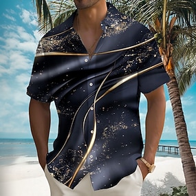 Voor heren Verloop Golven Abstracte kunst Overhemd Zomer overhemd Overhemd met knopen Korte mouw Mode-casual Buiten Vakantie Dagelijks gebruik Zomer Lente Strijkijzer 3D-afdrukken shirts met kraag