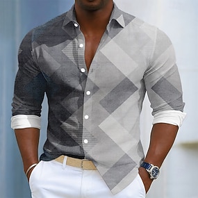 Voor heren Geometrisch Raster / Plaid Overhemd Hawaiiaans overhemd Overhemd met knopen Lange mouw Hawaii Dagelijks gebruik Causaal Strand Kleding Zomer Lente Strijkijzer 3D-afdrukken Linnenachtig