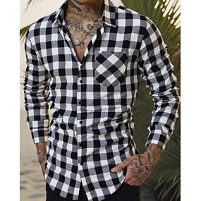 Voor heren Overhemd Zomer overhemd Normaal shirt Strand hemd Overhemd met knopen Zwart Blauw Groen Lange mouw Ruitjes Revers Vakantie Hawaii Zak Kleding Polyester Modieus Casual Comfortabel