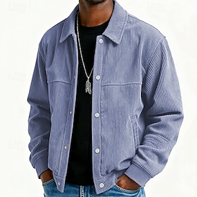 Voor heren Lichtgewicht jack Corduroyjack Vrijetijdsjas Dagelijks Buiten Zak Lente Herfst Effen Streetwear Stijlvol Opstaande boord Normaal Donkergrijs Paars Khaki Jacks