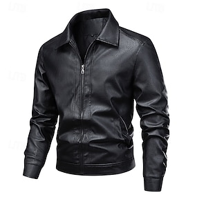 Voor heren Jas van imitatieleer Overgangsjack Bikerjack Alledaagse kleding Thermisch Warm Regenbestendig Herfst Imitatieleer Zwart Bruin Jacks