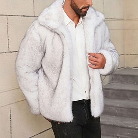 Voor heren Winterjack Jas van imitatiebont Vakantie Dagelijks Thermisch Warm Fleece Herfst Winter Effen Modieus Streetwear Revers Normaal Imitatiebont Wit Bruin Grijs Jacks