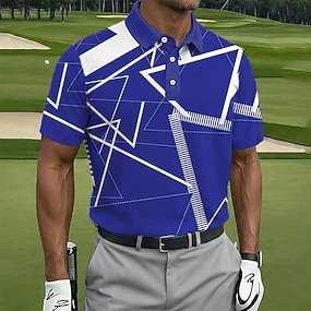 Voor heren Meetkundig Golf Sport Poloshirts Korte mouw Poloshirt Overhemden met kraag Casual Sportkleding Knop Zomer blauw Hemelsblauw Paars