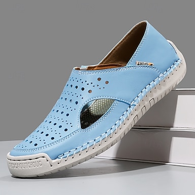 Lichtblauwe instapschoenen voor heren, ademend en comfortabel, ideaal voor buitenactiviteiten in resorts en vakantieoorden.