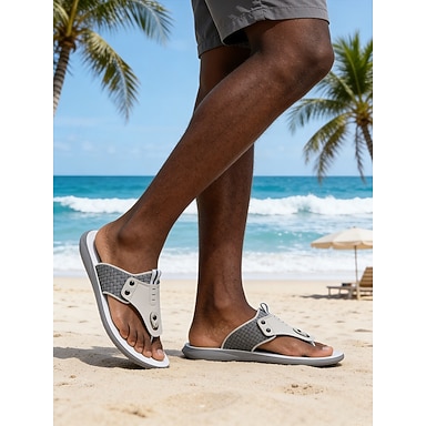 Grijze heren slippers, zacht bovenwerk met verstelbare band, ideaal voor strandvakanties, ontspanning aan het zwembad en casual zomerkleding.