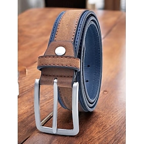 heren tweekleurige imitatieleren riem | stijlvol bruin en blauw design met metalen gesp voor casual en formele gelegenheden