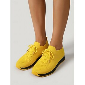 Gele lichtgewicht gebreide sneakers voor dames – ademende sportschoenen met vetersluiting voor dagelijks comfort, dagelijks gebruik en een actieve levensstijl.