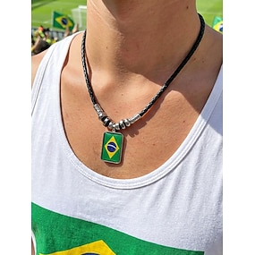 herenlegering &Acryl ketting met hangers in de vorm van nationale vlaggen, designs uit verschillende landen, casual bohemian stijl, perfect voor voetbalfans, wedstrijddagen en buitenactiviteiten.