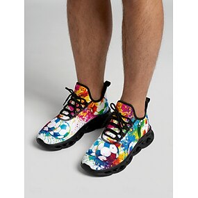 Kleurrijke sneakers voor heren met voetbalprint – lichtgewicht, ademende sportschoenen met graffiti-design, comfortabele sportschoenen voor fans en feestjes. &vrijetijdskleding