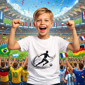 100% katoen Kinderen Jongens Zwart Wit Rood Grafisch Voetbal T-shirt Blouse Strakke ronde hals Korte mouw Buiten Dagelijks gebruik Modieus Streetwear Ontwerper Opdrukken Zomer Lente