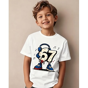 Katoen Kinderen Jongens Wit Grafisch Grappige Slang 67 T-shirt Blouse Strakke ronde hals Korte mouw Buiten Dagelijks gebruik Modieus Streetwear Ontwerper Opdrukken Zomer