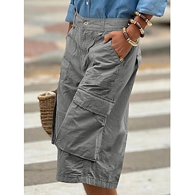 Dames korte broek Cargoshorts Chinese Vakantie Streetwear Casual Knielengte Middelhoge taille Effen Kleur Zak Comfortabel Inelastisch Dagelijks Buiten Vakantie blauw Geel Aarde Grijs Zwart Zomer Lente