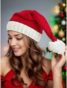 gebreide kerstmuts voor dames en kinderen, gezellige polyester kerstmuts met pompon, perfect voor familiefoto's en kerstcadeaus
