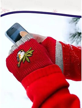 handgebreide vingerloze handschoenen met vogelborduursel - gezellige winterwanten voor dames, warme gebreide wollen armwarmers