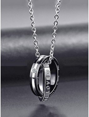 Herenketting van legering met in elkaar grijpende ringen, zwart en roségoud, ideaal voor Valentijnsdag, bruiloften en als cadeau, met een elegant ontwerp en hoogwaardige afwerking.