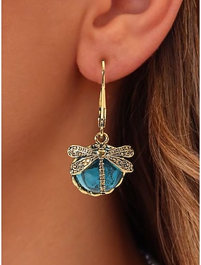 intage libellen oorbellen voor dames – vergulde boho oorbellen met blauwe glazen kralen, door de natuur geïnspireerde sieraden voor casual, feestelijke en cadeau-gelegenheden