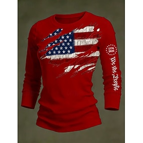 Onafhankelijkheidsdag Patriottische Dames T-shirt Grafisch Vlag Vintage Stijlvol Classic Lange Mouw Crew Neck Reguliere Tops Dagelijks Weekend Print Rood Zomer Lente Herfst Winter