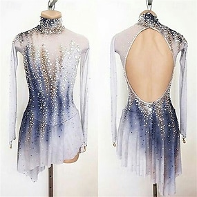 Kunstschaatsjurk Dames Voor meisjes Schaatsen Jurken Blauw / wit Lapwerk Open achterkant Netstof Spandex Hoge Elasticiteit Opleiding Wedstrijd Kunstschaatskleding Klassiek Kristal / Bergkristal Lange