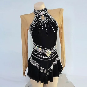 Kunstschaatsjurk Dames Voor meisjes Schaatsen Jurken Zwart Lapwerk Duimopening Netstof Hoge Elasticiteit Opleiding Wedstrijd Kunstschaatskleding Klassiek Kristal / Bergkristal Lange mouw Schaatsen