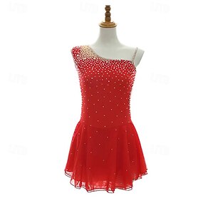 Kunstschaatsjurk Dames Voor meisjes Schaatsen Jurken Rood Paars Lapwerk Asymetrische zoom Netstof Spandex Rekbaar Opleiding Oefenen Professioneel Kunstschaatskleding Kristal / Bergkristal Mouwloos