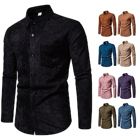 Voor heren Overhemd Button-down overhemd Corduroyshirt Effen Bruiloft Uitgaan blauw Zwart Rood Licht Bruin Lange mouw Strijkijzer Lente & Herfst Kleding Zak