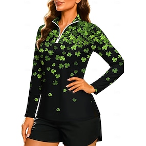 Sint Patrick Dames Verloop Clover Sweatshirt Polo-sweatshirt Tops Hemd Lange mouw Vetoketju Afdrukken Kwart ritssluiting UPF50+ UV-bestendig Elastisch Ademend Volleybal Tennis Golf Hoge nek Opstaand