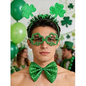 Dameskostuumset met 3-delige accessoires voor St. Patrick's Day, inclusief glitterbril en haarband. &feestkleding met vlinderdas
