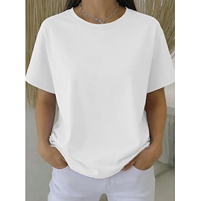 Dames 100% Katoenen Oversized T-shirt Tee Effen Kleur Stijlvol Klassiek Casual Korte Mouwen Ronde Hals Reguliere Tops Dagelijks Uitgaan Zwart Wit Marineblauw Donkergroen Taupe Zomer Lente