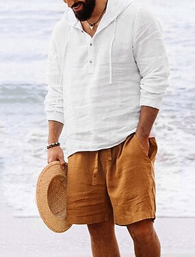Voor heren linnen overhemd Zomer overhemd Strand Kleding Effen Kleur Buiten Straat Kastanjebruin Zwart Wit Blozend Roze Lange mouw Zonder Kraag Kleding