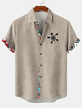 Voor heren Linnen overhemd Zomer overhemd Strand Kleding Overhemd met knopen Tribal Vakantie Casual Bruin Groen Khaki Korte mouw Strijkijzer Zomer Lente Kleding